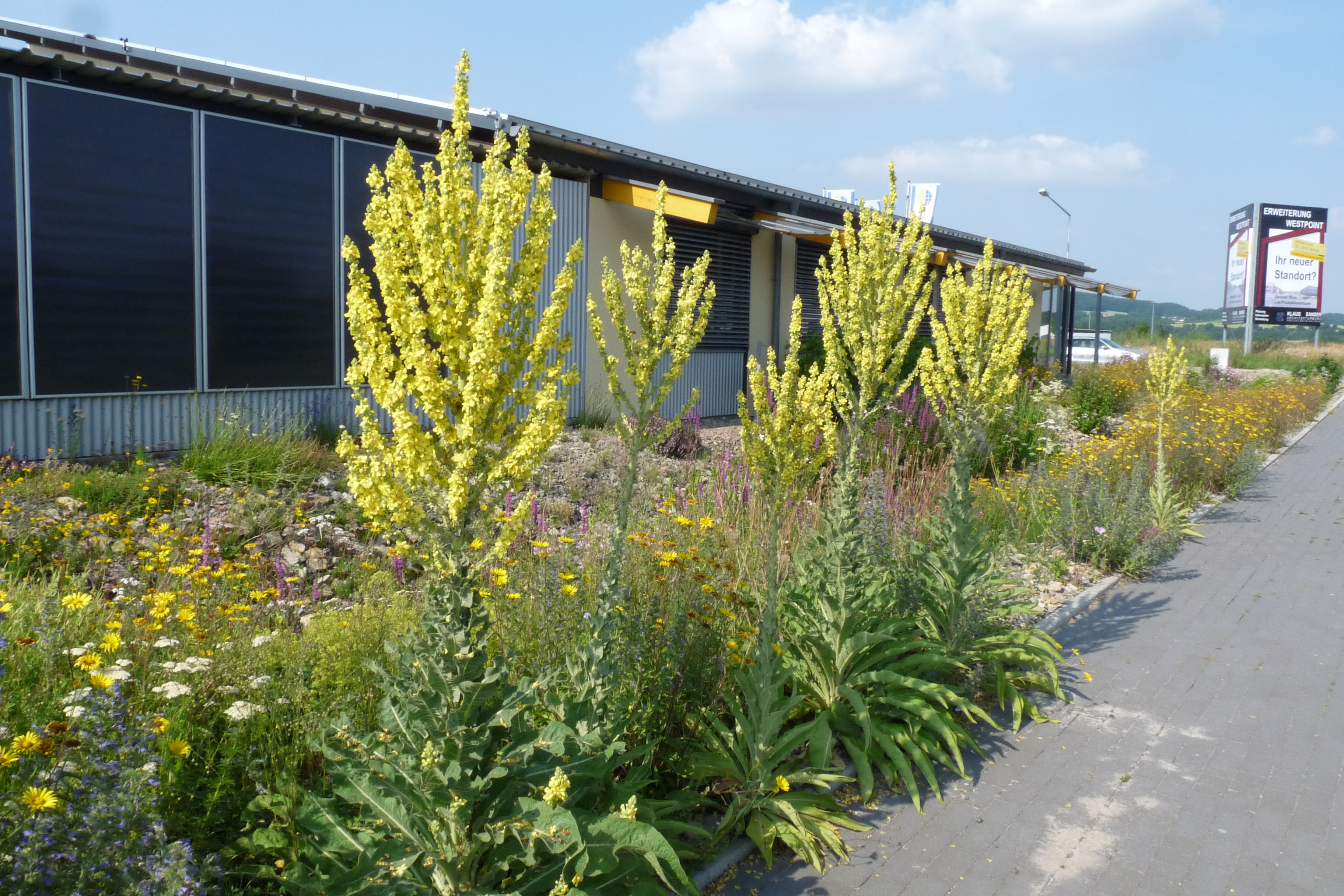 Fotos: Beispiele für Dach- und Fassadenbegrünung, Blühstreifen, Freiflächengestaltung