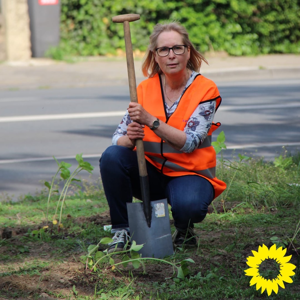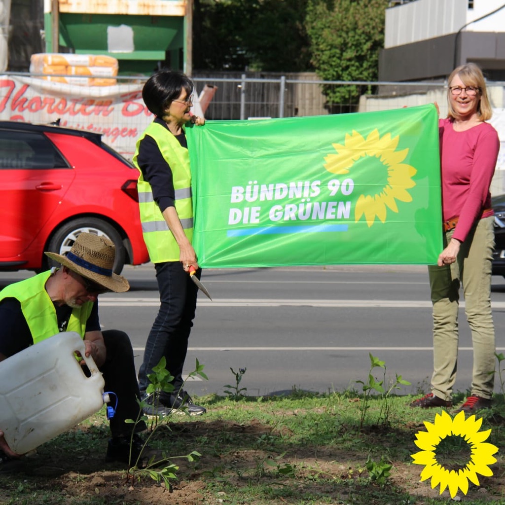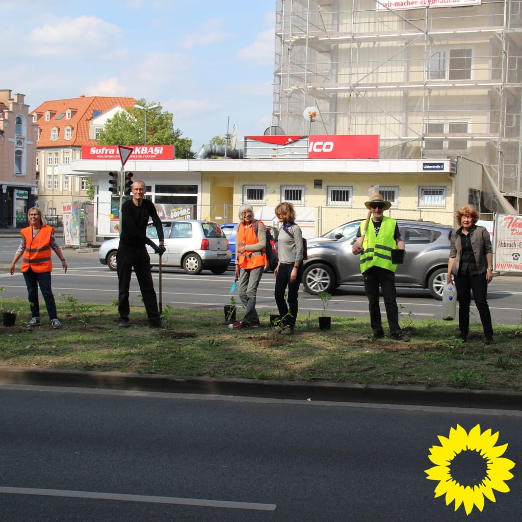 Weniger Blech auf den Straßen – mehr Grün in der Stadt! Nach diesem Motto hat der Stadtverband von Bündnis90/DIE GRÜNEN seine alljährliche Pflanzaktion auf dem Grünstreifen des Innenstadtrings am Lübbertor durchgeführt.