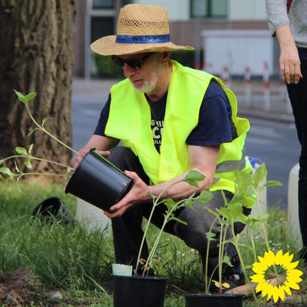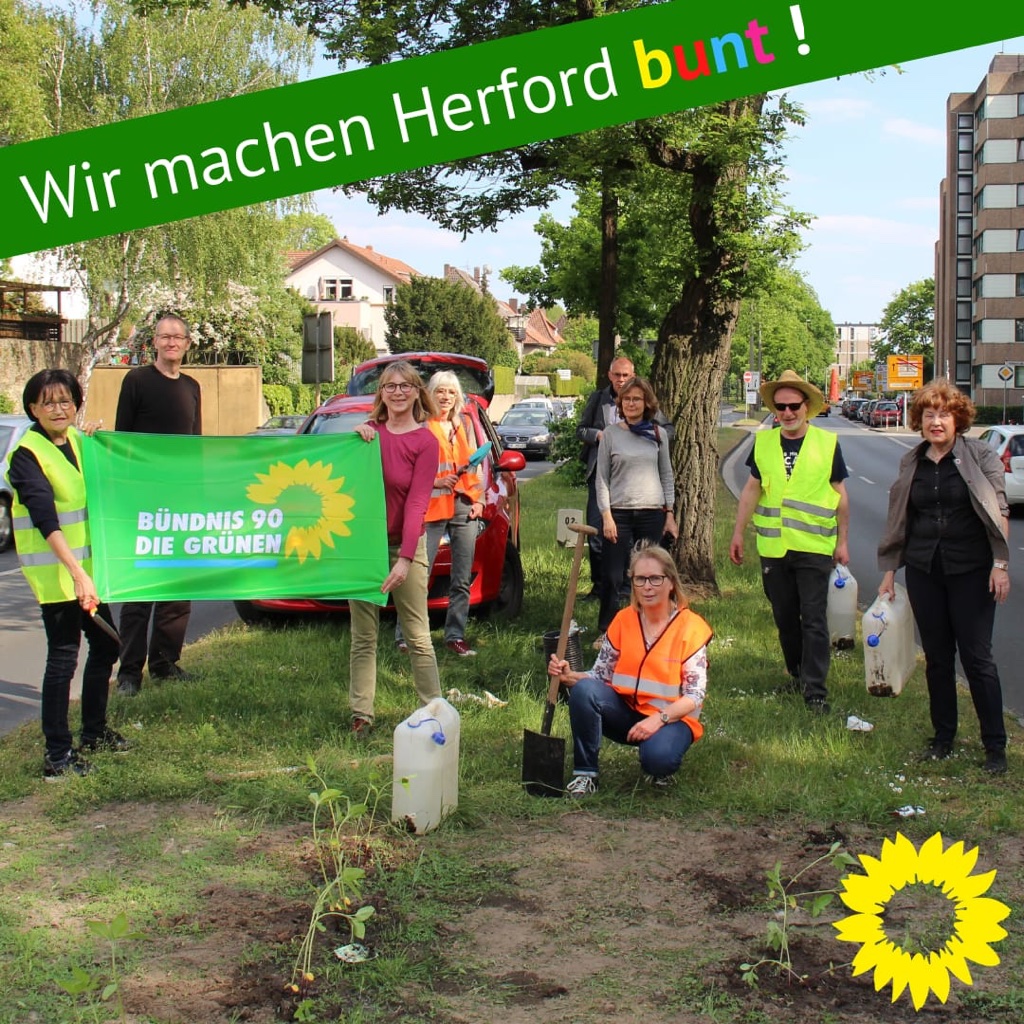 Mitglieder der Grünen setzten kleine Sonnenblumen-Pflanzen, die in den nächsten Wochen zu ausgewachsenen Sonnenblumen heranreifen werden. Mit dieser Aktion weisen die Grünen auch auf die abnehmende Biodiversität in unserer Umwelt hin, die wesentlich durch intensive landwirtschaftliche und siedlungsbezogene Nutzungen bedingt sei. Derartige Entwicklungen wie ein übermäßiger Pestizideinsatz auf landwirtschaftlichen Flächen oder ein wachsender Flächenverbrauch für Wohn-, Gewerbe- und Verkehrsflächen seien auch im Herforder Raum deutlich festzustellen.