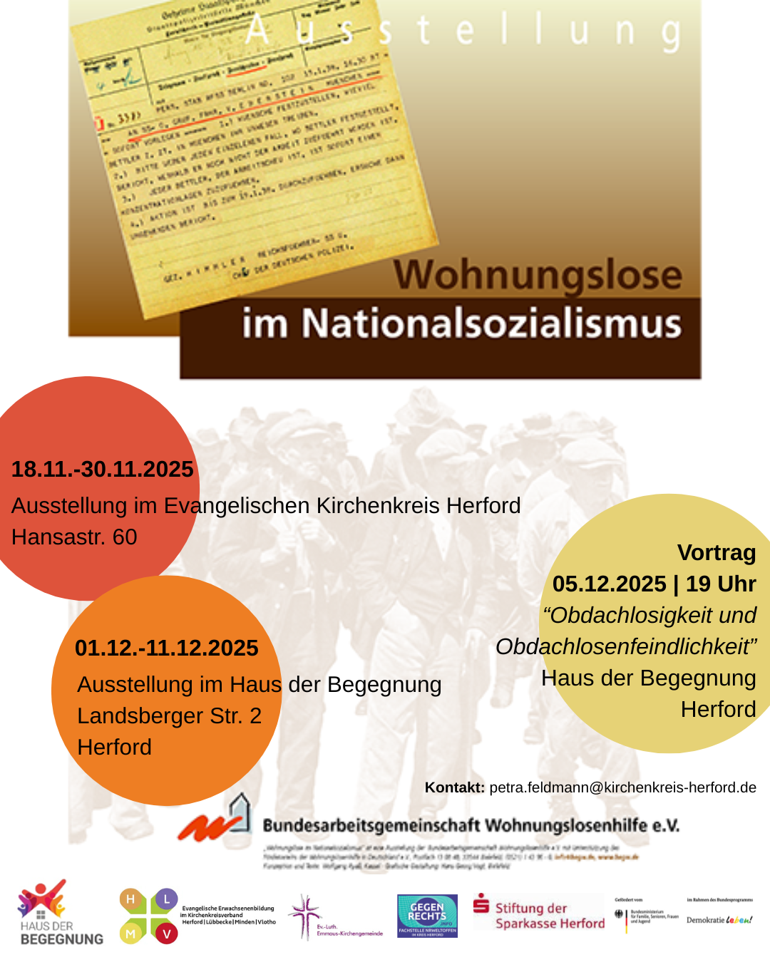 Parallel dazu ist vom 02.–11.12.2025 im Haus der Begegnung eine Ausstellung zur Lebenssituation und Verfolgung obdachloser Menschen in der NS-Zeit zu sehen.